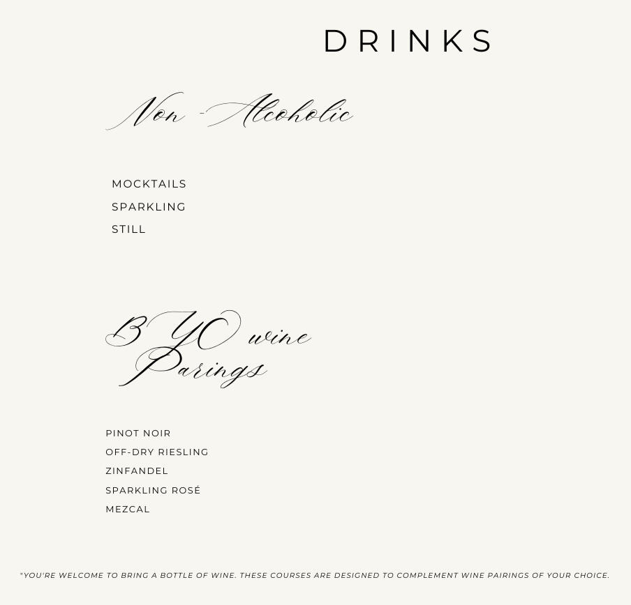 | 5 COURSE TASTING MENU | $85 | ||
